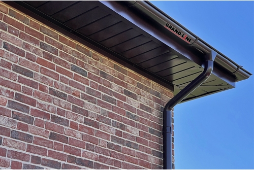 Водосток Grand Line PE 125×90 обладает водопропускной способностью на 25% выше, чем у аналогов с полукруглым желобом. Увеличенная глубина желоба обеспечивает такую производительность. Благодаря этому система собирает осадки с большей площади кровли, что снижает потребность в дополнительных водосточных трубах и сопутствующих элементах.